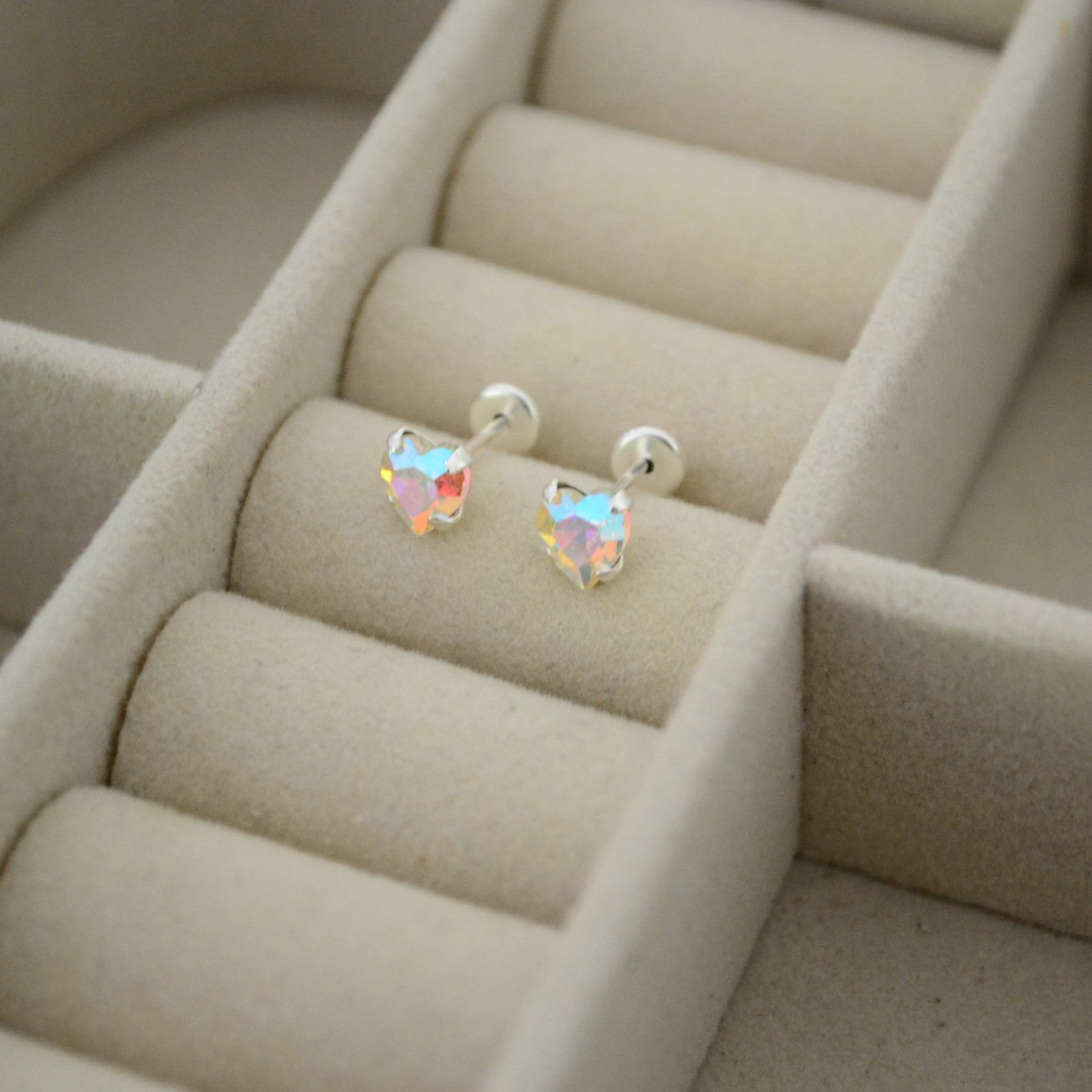 Aros Abridores con Cristal Corazón 5mm Tornasol Engarzado