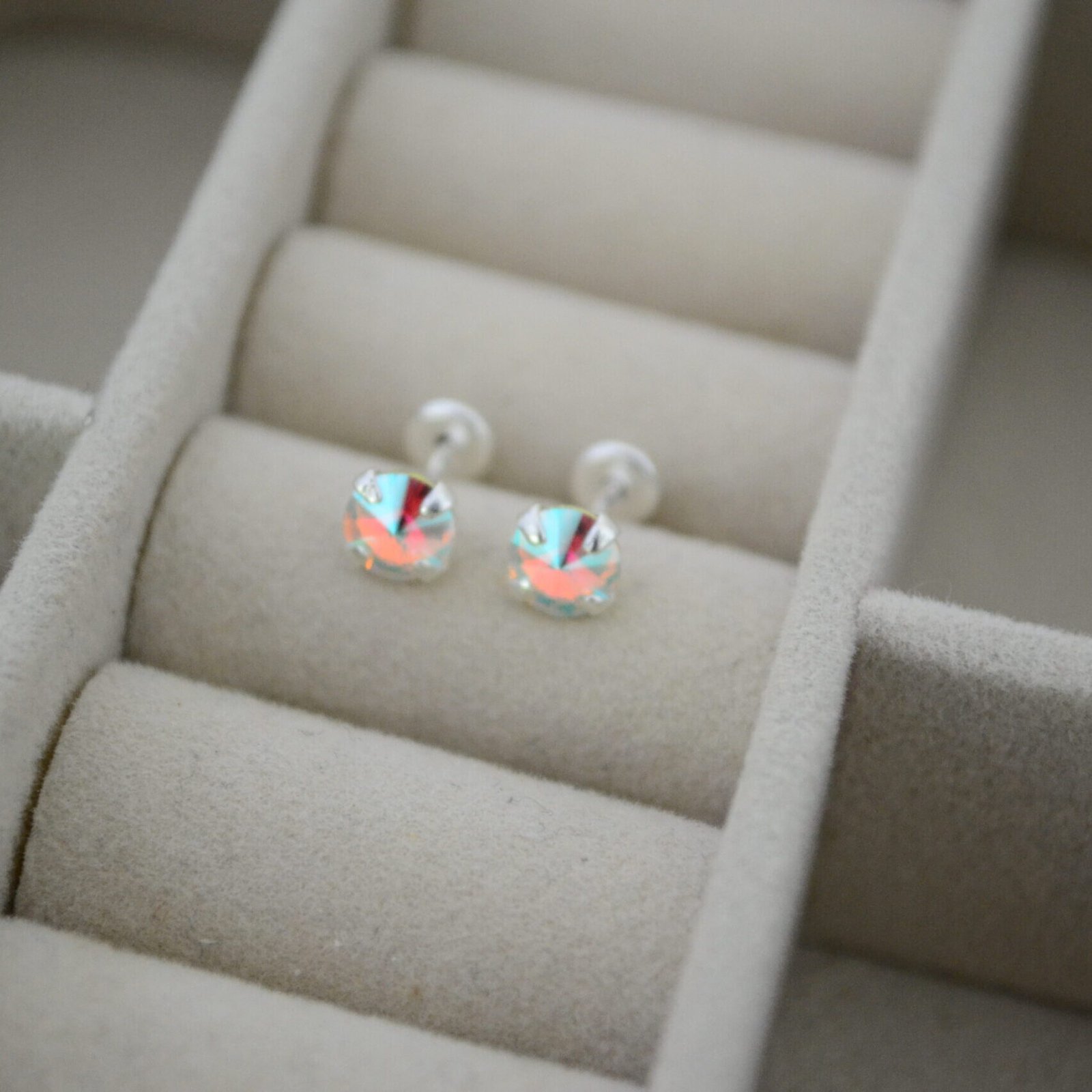 Aros Abridores con Cristal Rivoli 5mm Tornasol Engarzado