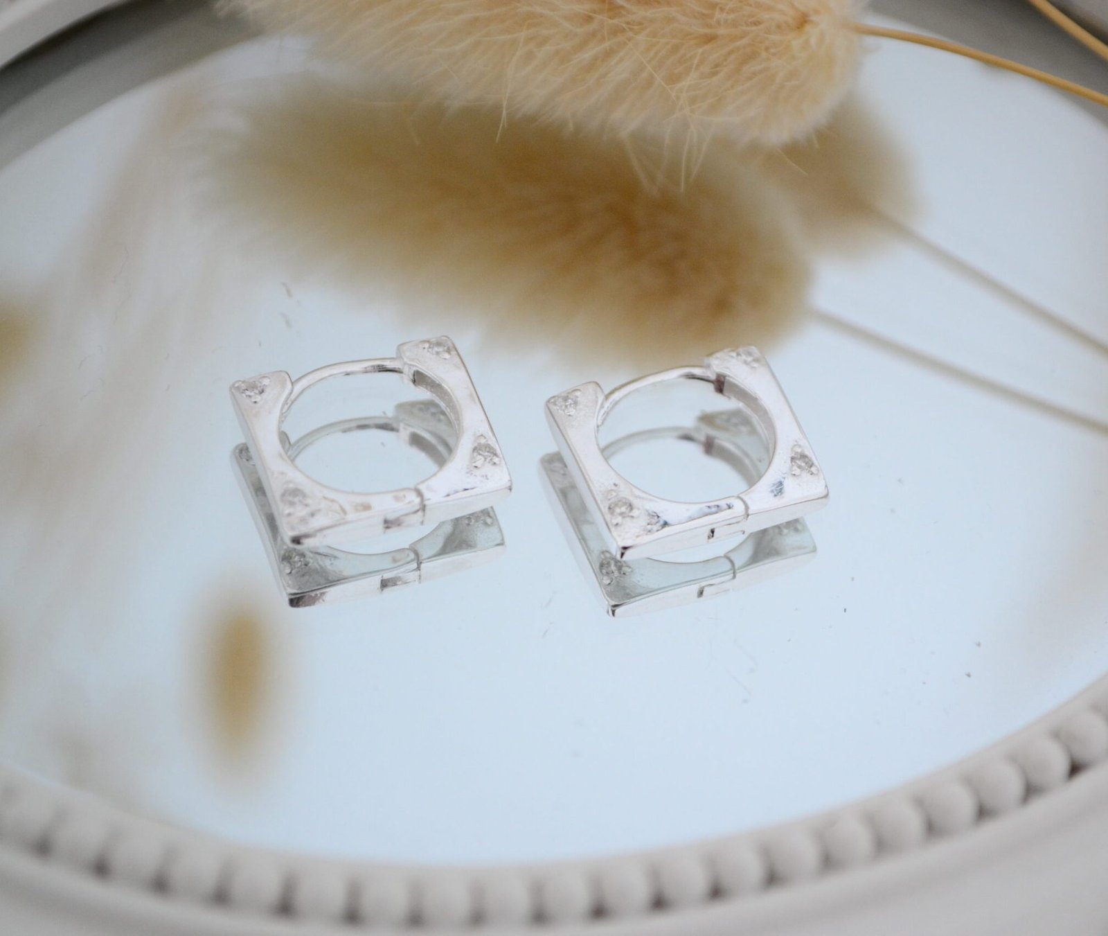 Aros AURORA: Huggies Cuadrados con Cúbics Engarzados en los Laterales