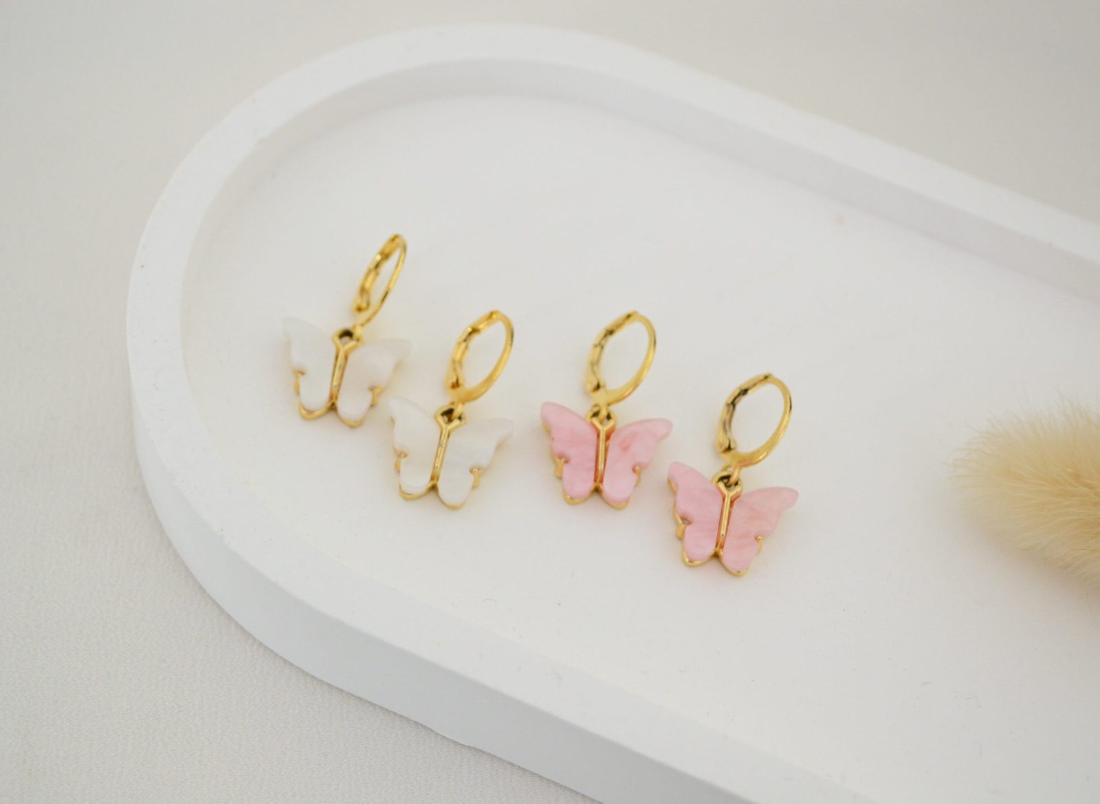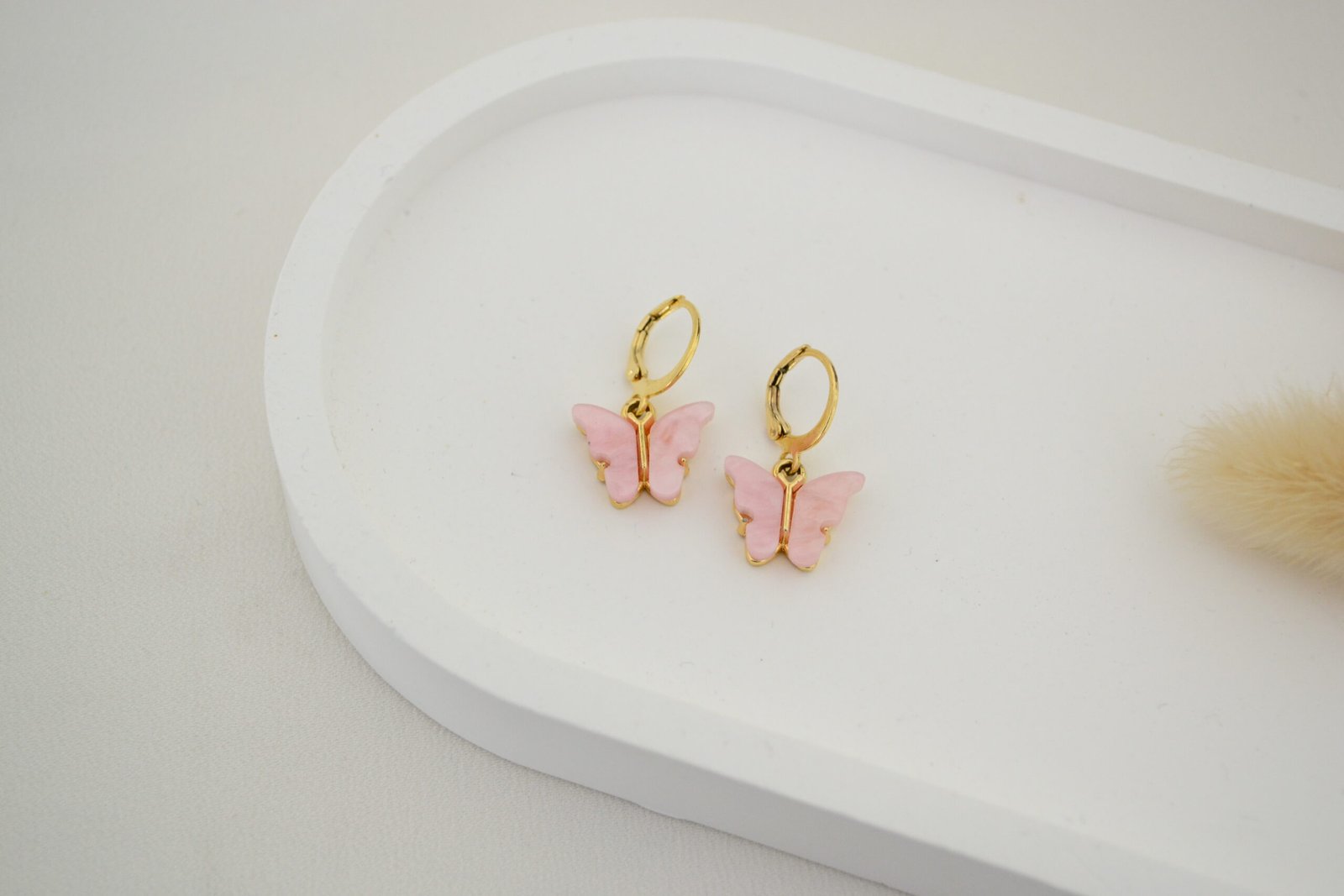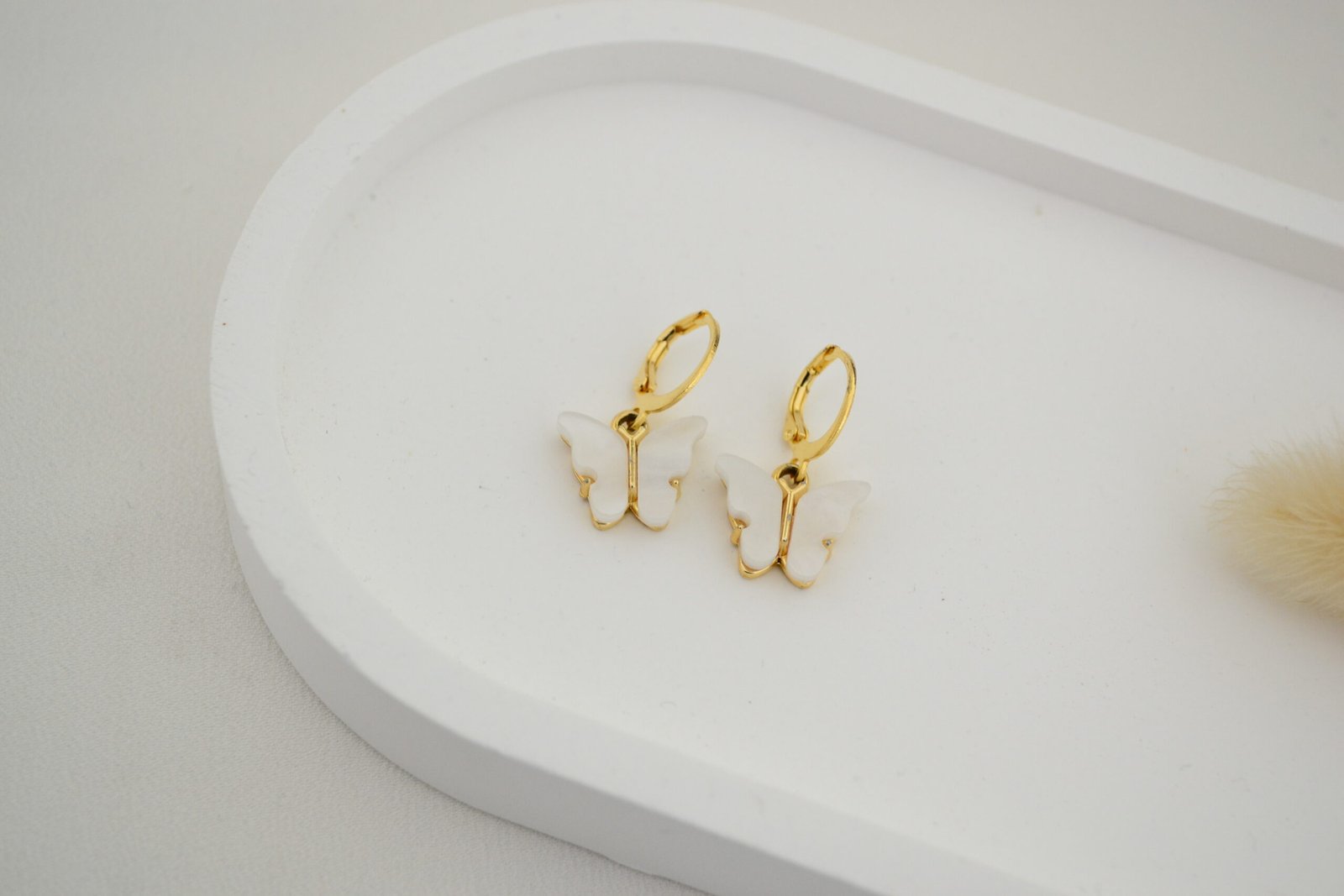 Aros Cierre Brisura Cerrada con Dije Colgante Mariposa Alas Simil Nácar – Acero Doré