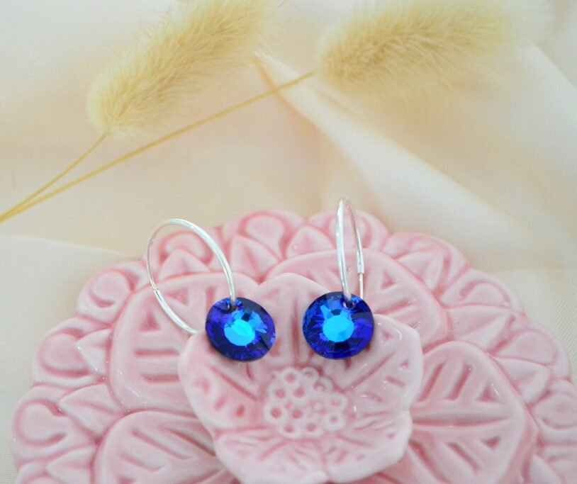 Aros FEDORA Argollita 2,2cm con Dije Sun 12mm Bermuda Blue Swarovski® Elements