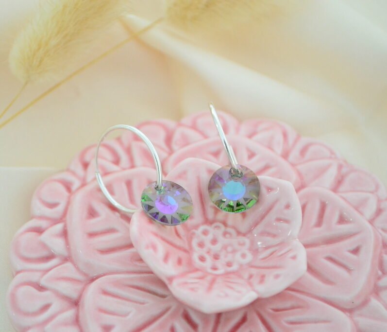 Aros FEDORA con Dije Sun Crystal Paradise Shine 12mm Swarovski® Elements / Argollita 2,2cm