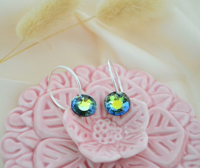Aros FEDORA con Dije Sun Sahara 12mm Swarovski® Elements / Argollita 2,2cm