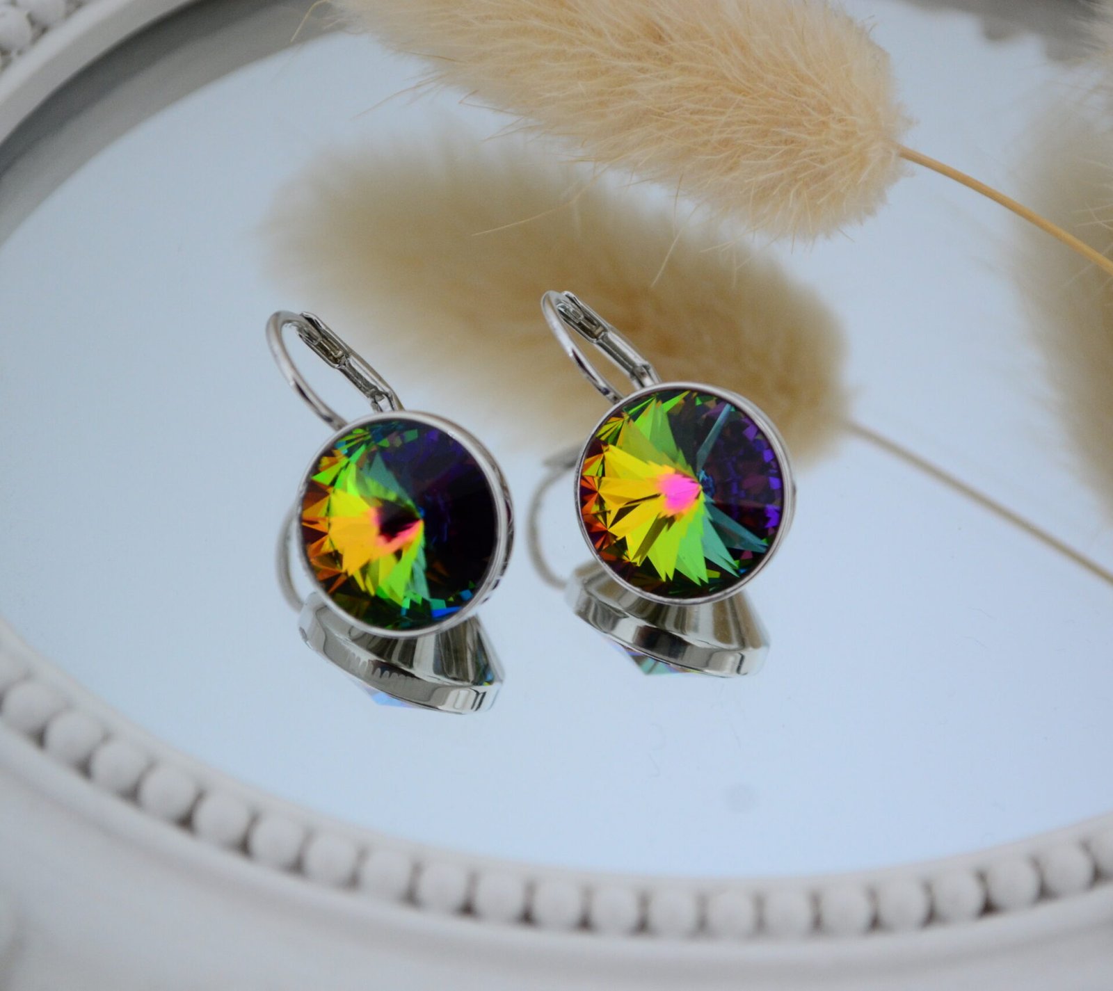 Aros Brisura Italiana con Cristal de 12mm Swarovski® Elements Rodinados – Crystal Vitrail Medium