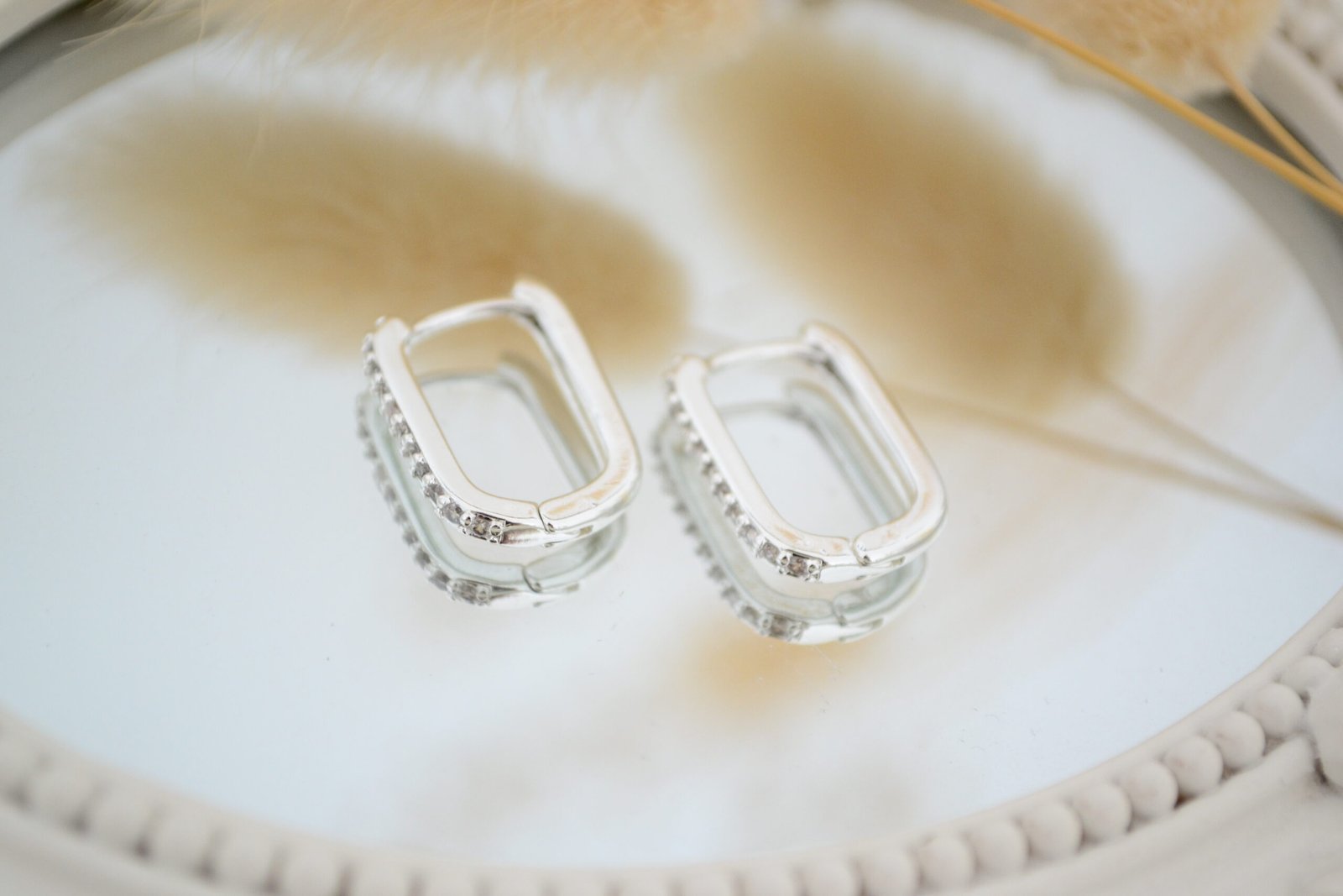 Aros Huggies Rectangular Acero Blanco con Línea de Cúbics 18mm