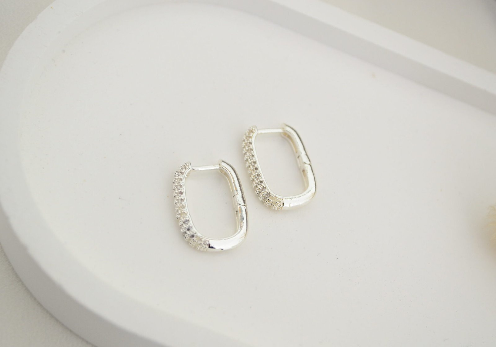 Aros Huggies Rectangular Acero Blanco con Línea de Cúbics 18mm