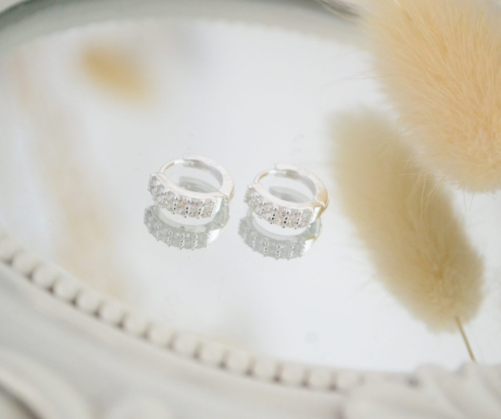 Aros LORENZA: Huggies con Doble Línea de Cúbics Engarzados