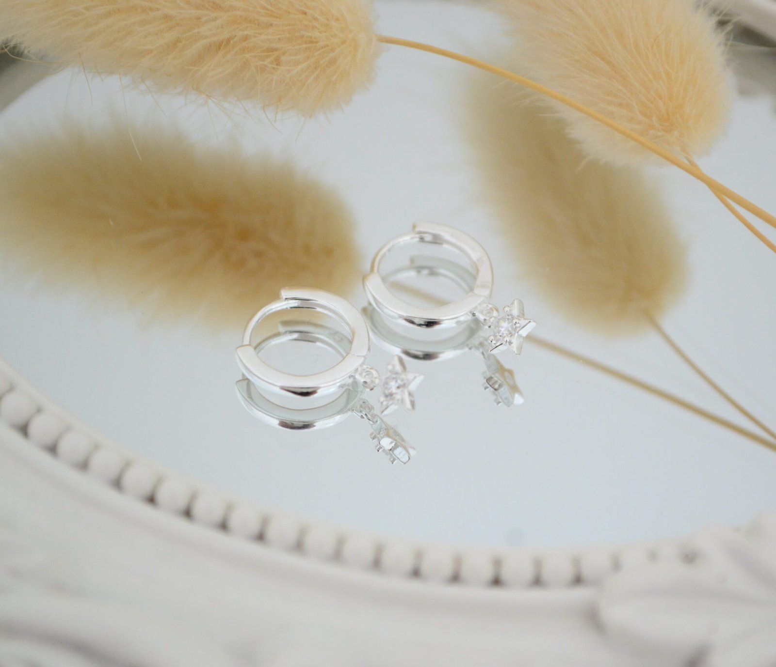 Aros LUCERO: Huggies Liso de 11mm con Dije Estrellita con Cúbic en el Centro Colgante