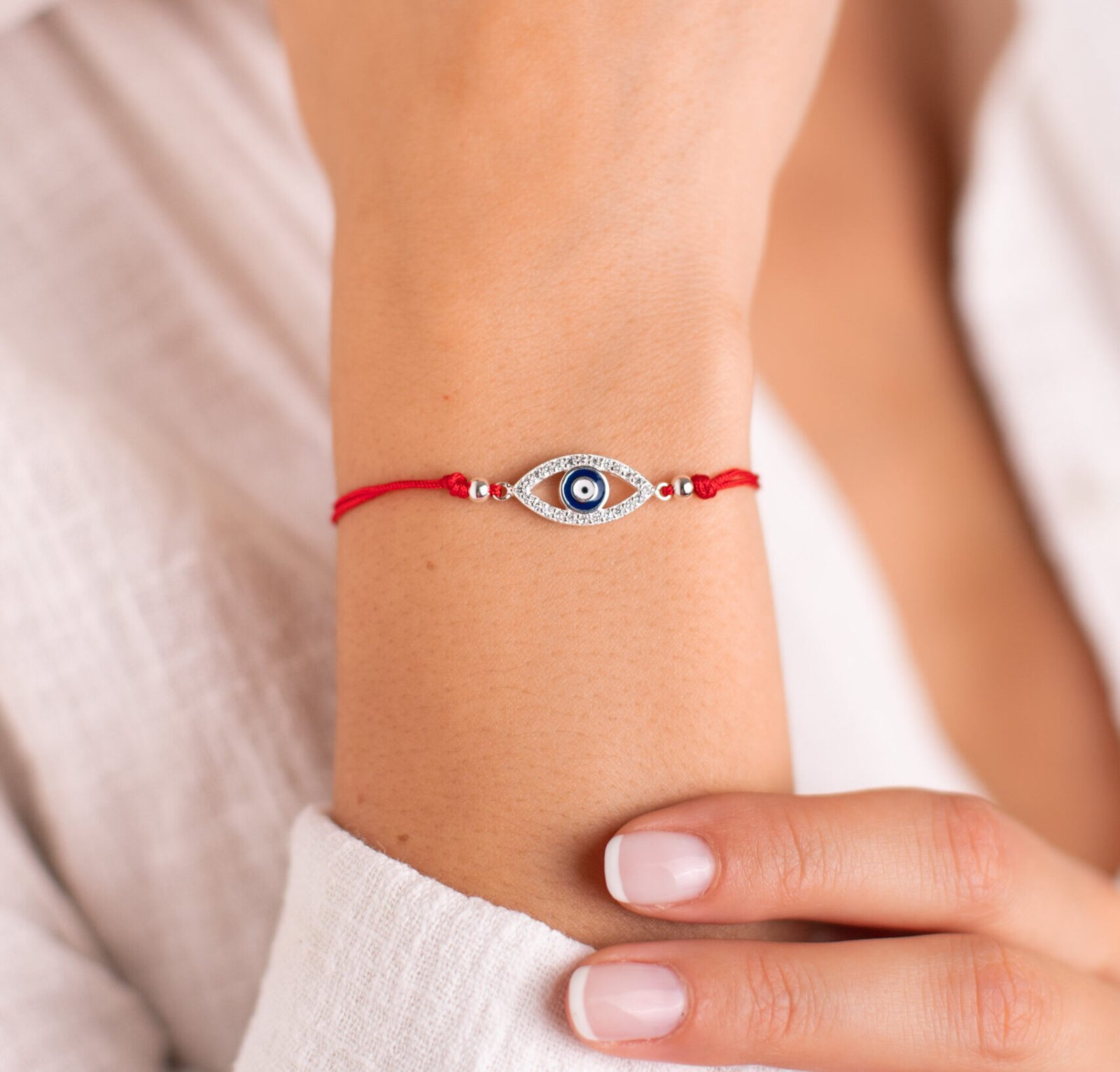 La Pulsera CALÍOPE combina la fuerza del hilo rojo, símbolo ancestral de buena suerte y resguardo energético, con un Ojito Turco en Plata 925, esmaltado y con micro cúbics que potencian su brillo y elegancia.