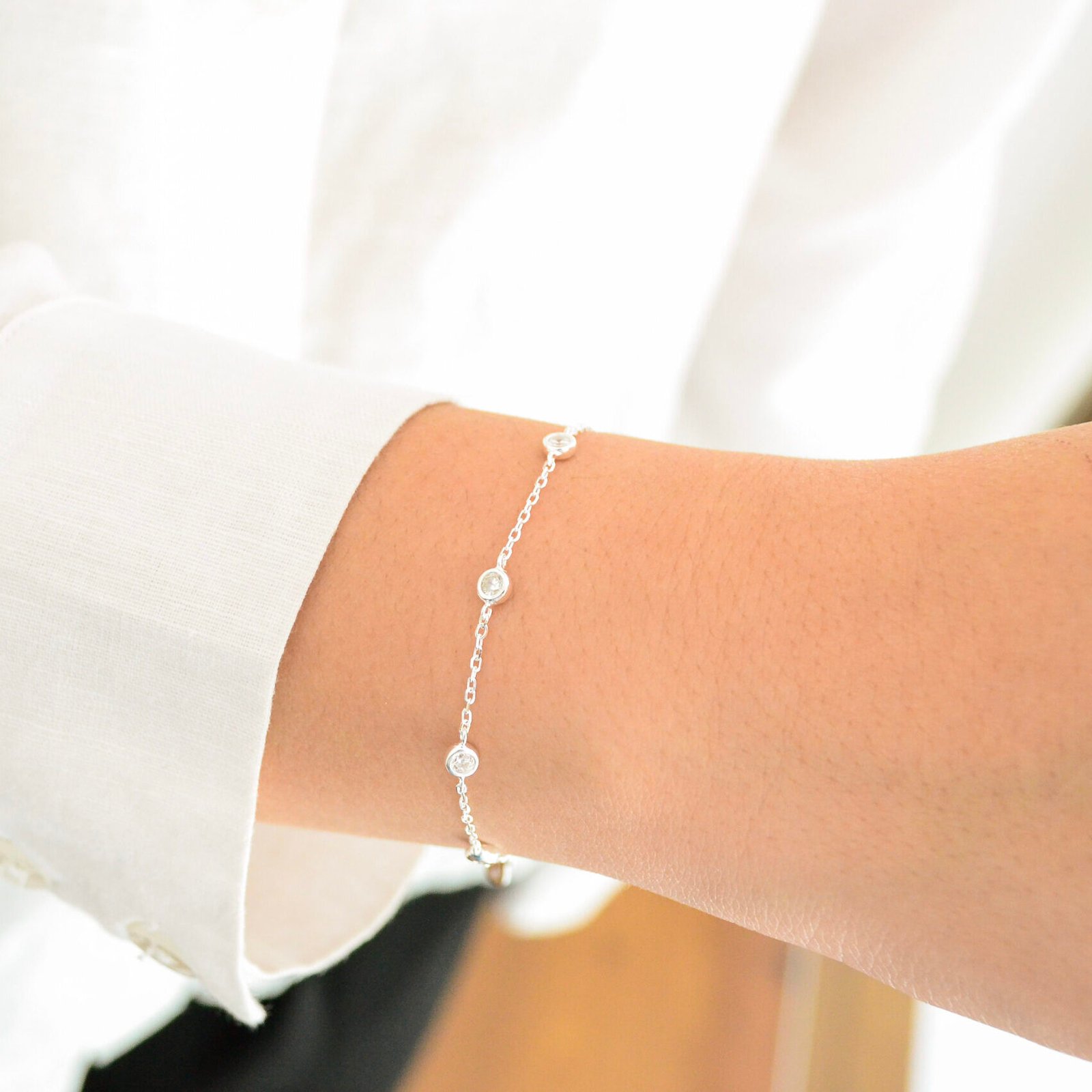 Pulsera CELINA: Trama Espejito con Cúbics en Virola Intercalados