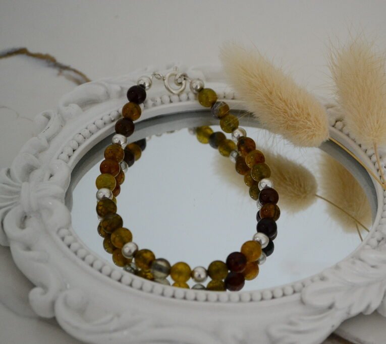 Pulsera Piedras Naturales: Ágata Natural 6mm con Bolitas 4mm de Plata Intercaladas